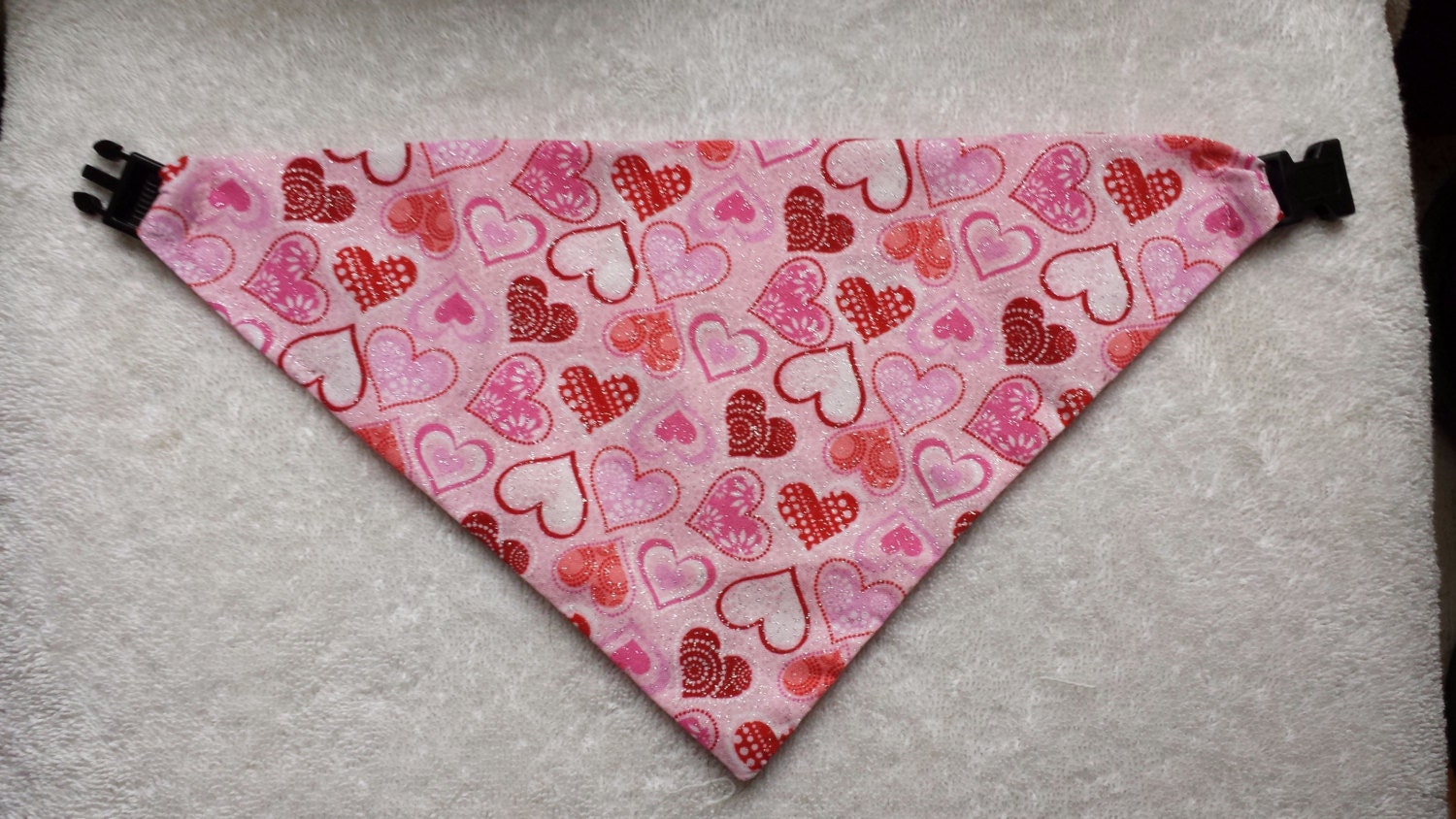 Sparkle Hearts Valentine's Day Clip on Dog Bandana With Buckle Pet Cat Bandanna Handmade to Order