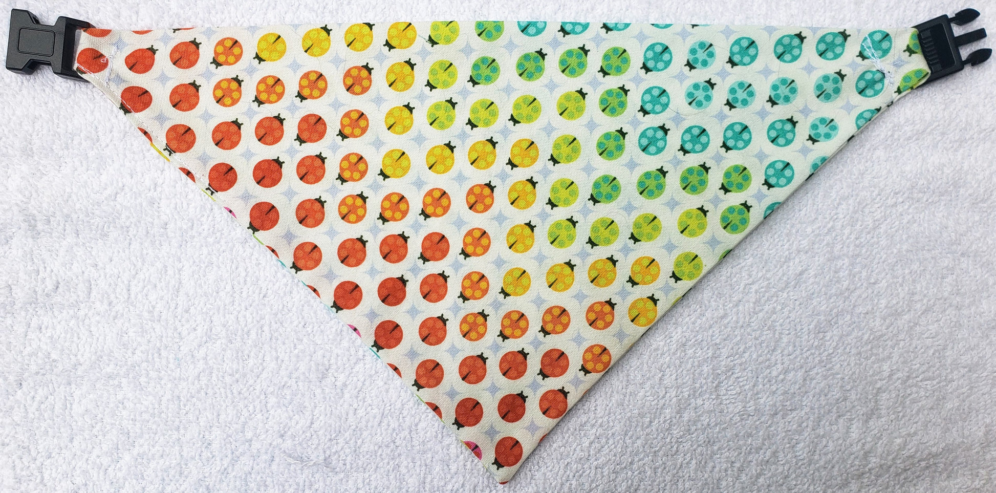 Clip on Dog Bandana With Buckle Pet Cat Bandanna Scarf Rainbow Ladybugs Summer Pride Handmade to Order