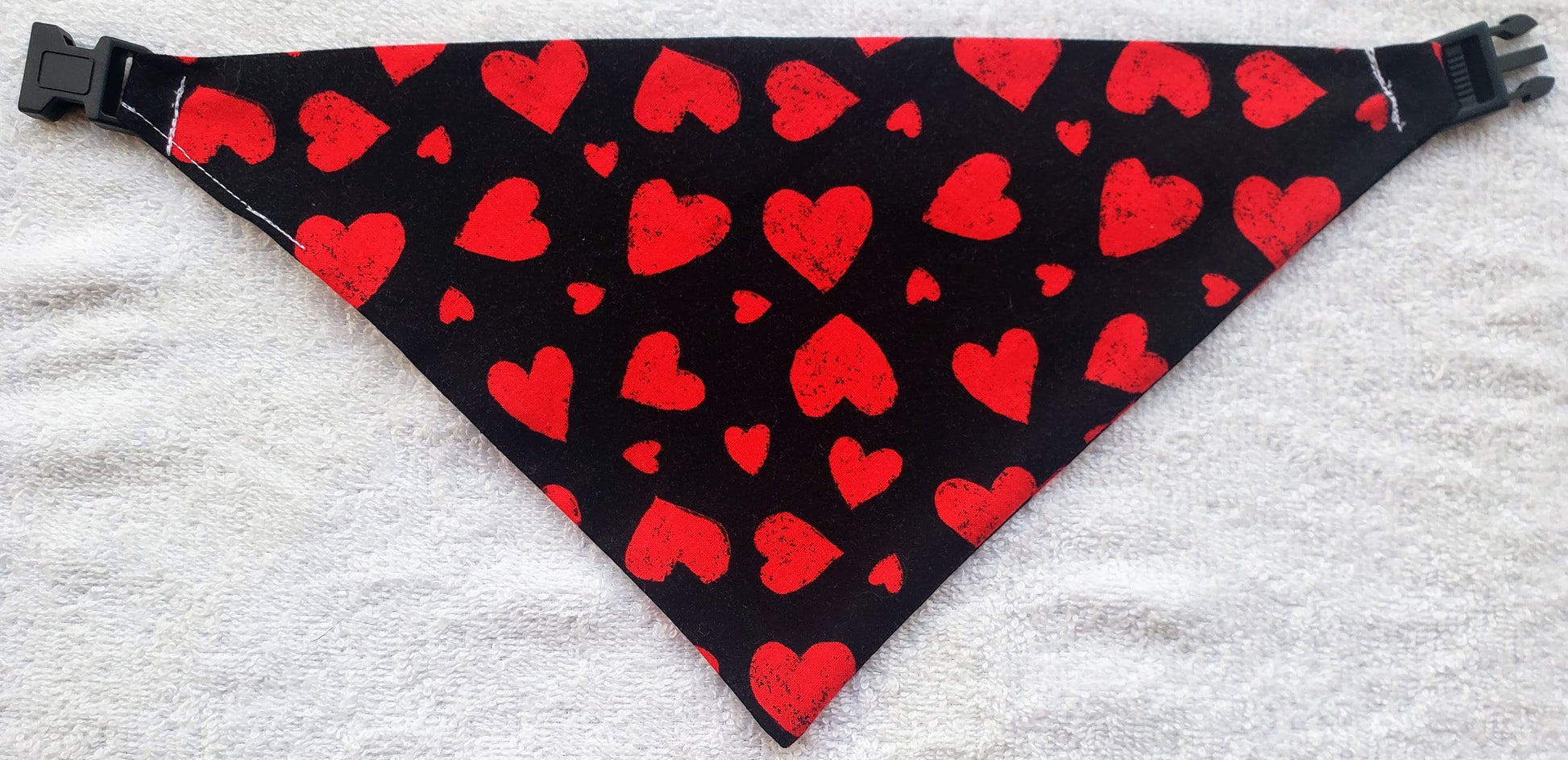 Red Hearts Valentine's Day Love Clip on Dog Bandana With Buckle Pet Cat Bandanna Handmade to Order