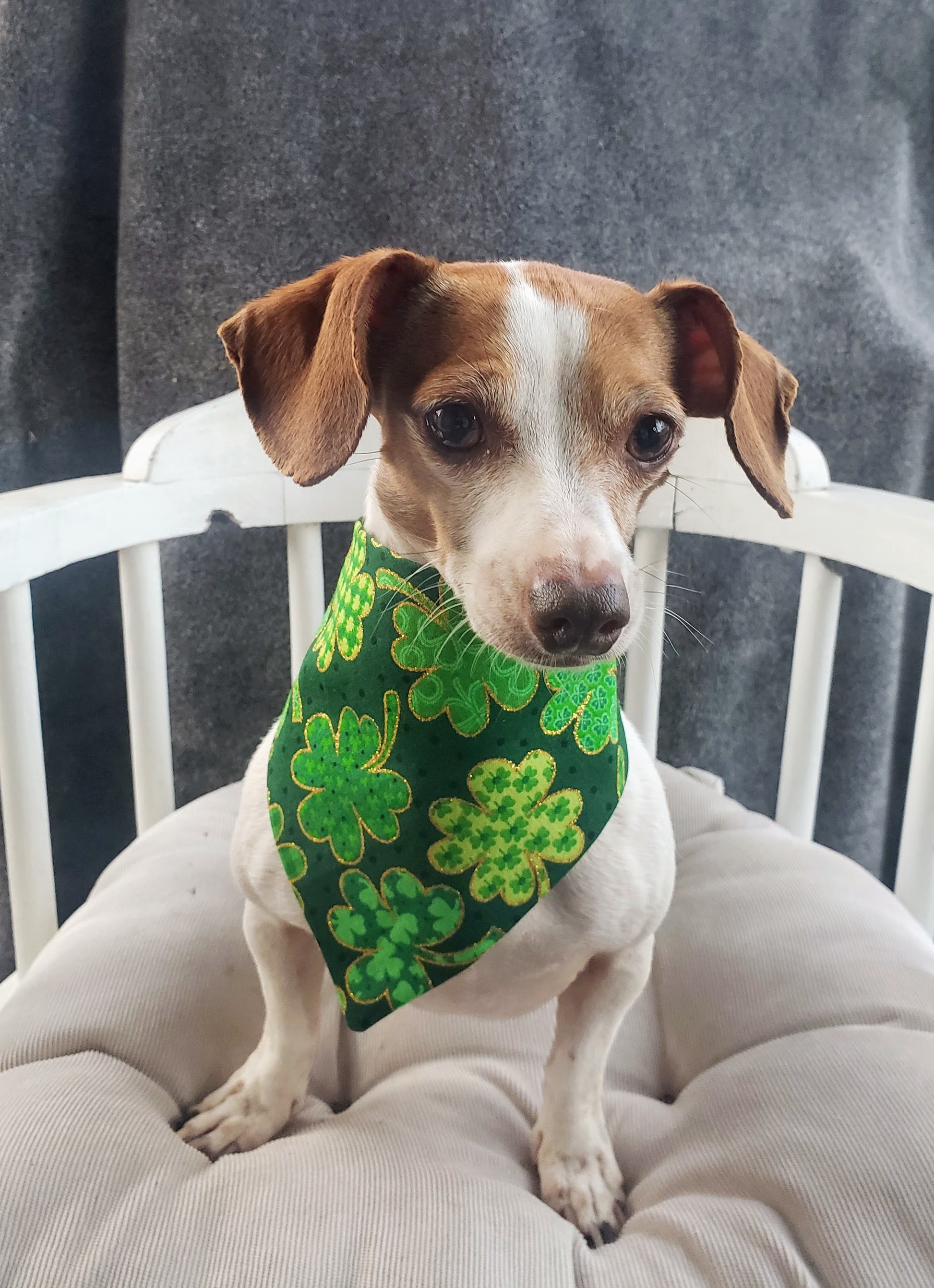 Lucky Shamrocks St. Patrick's Day Gold Bling Clip on Dog Bandana With Buckle Pet Cat Bandanna Handmade to Order