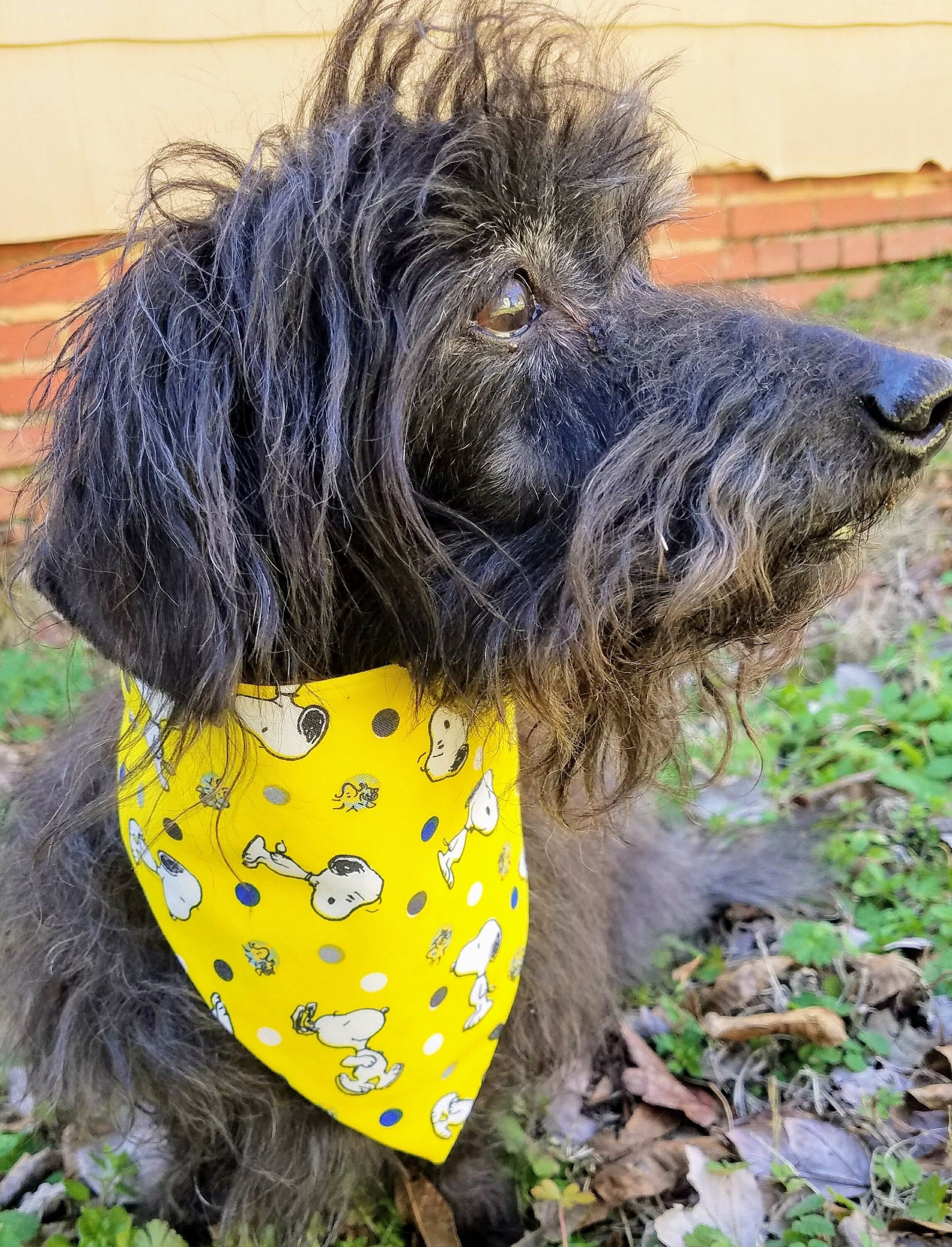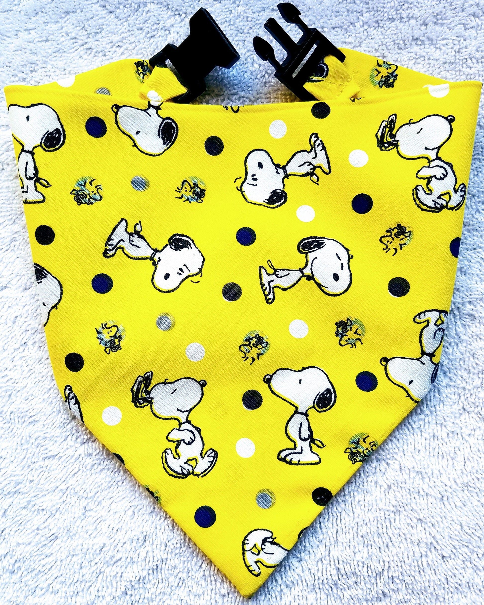 Clip on Dog Bandana With Buckle Pet Cat Bandanna Scarf Yellow Snoopy & Woodstock Peanuts Handmade to Order