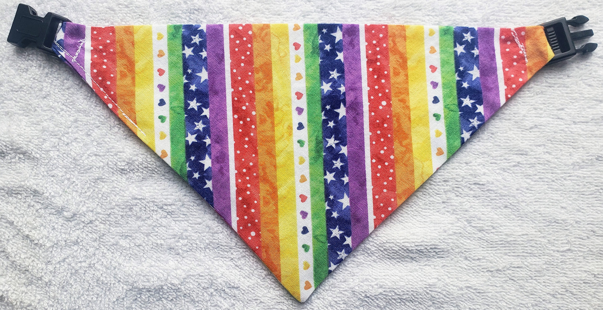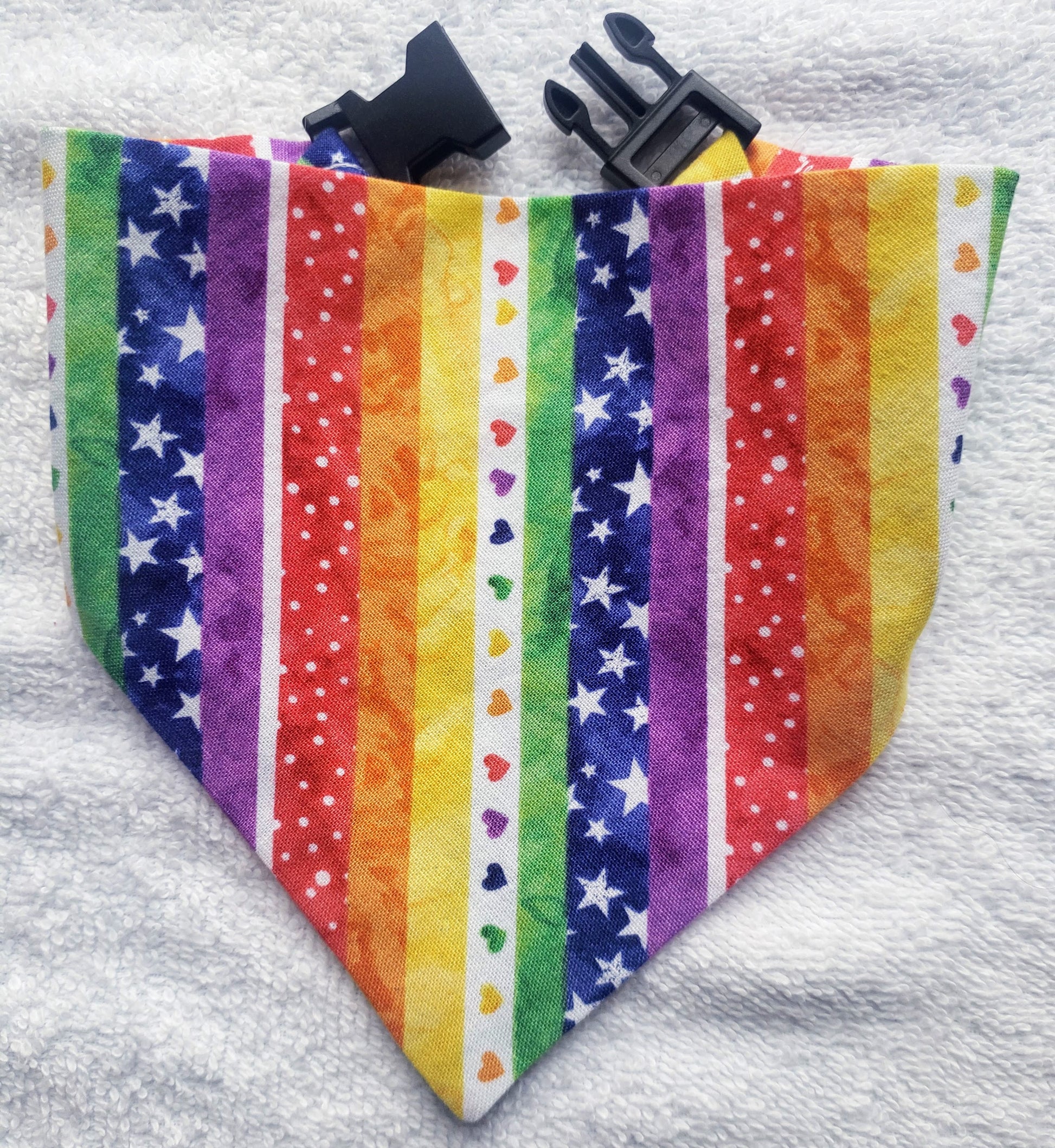 Clip on Dog Bandana With Buckle Pet Cat Bandanna Rainbow Stars & Hearts PRIDE Stripes Multicolor Handmade to Order