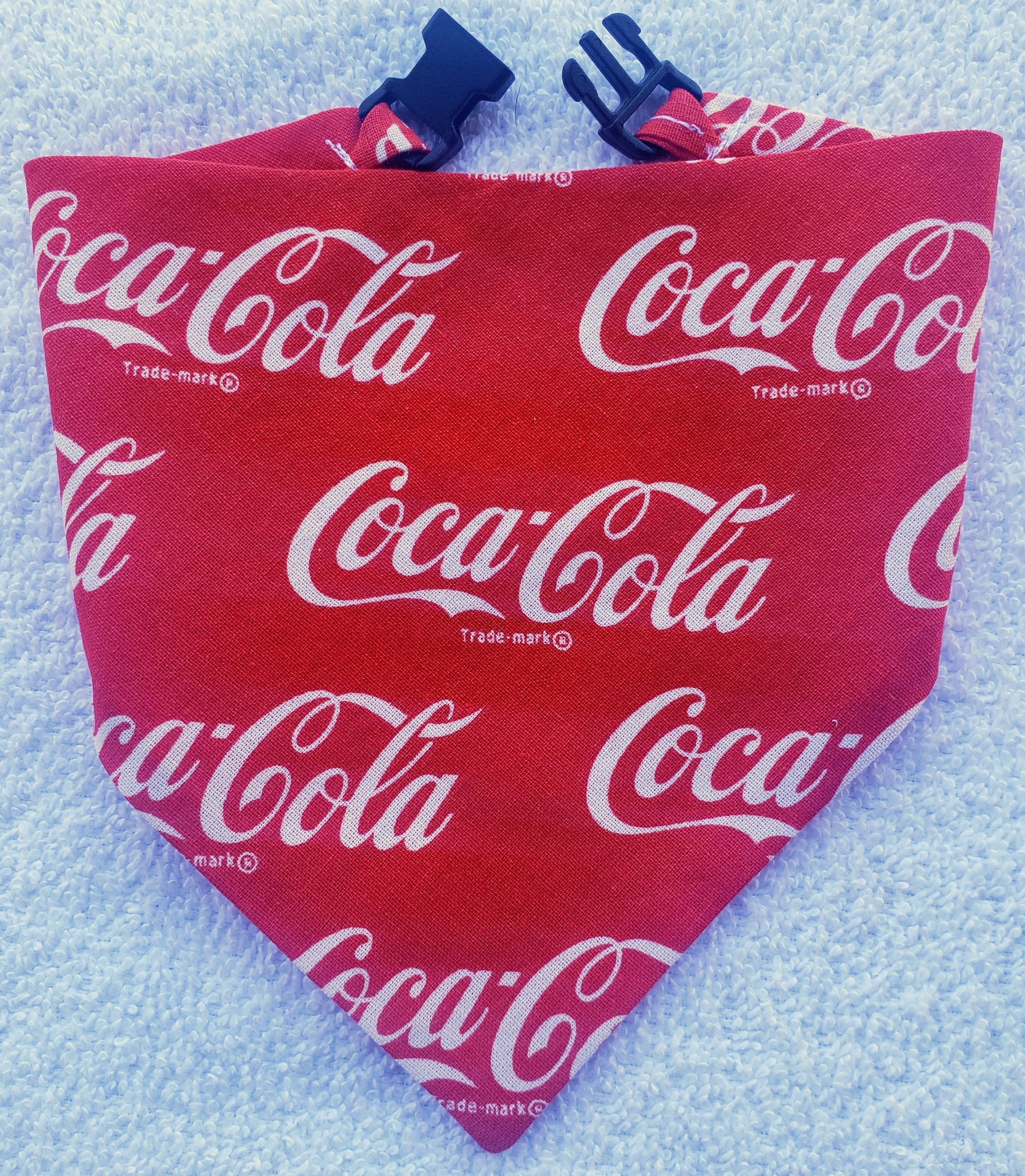 Clip on Dog Bandana With Buckle Pet Cat Bandanna Coke Coca Cola Red Handmade to Order