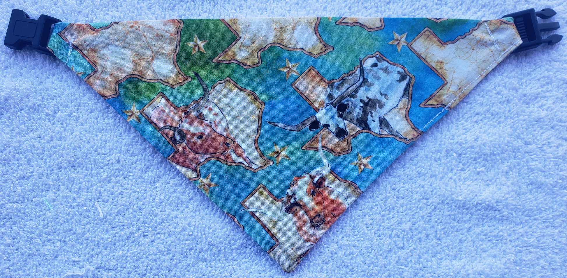 Clip on Dog Bandana With Buckle Pet Cat Bandanna Texas Longorn Maps Texan State Pride Handmade to Order